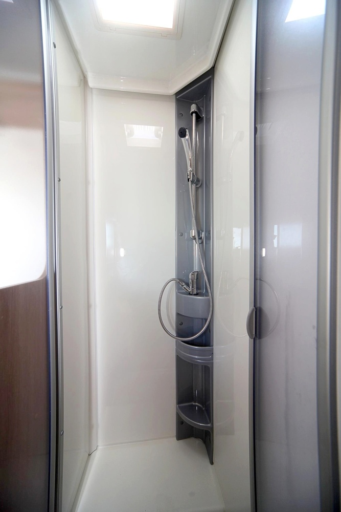 Esta autocaravana dispõe de sistema de aquecimento de água, sendo o duche de água quente.