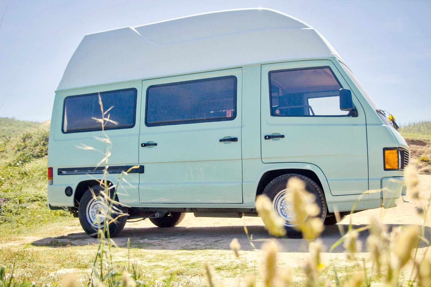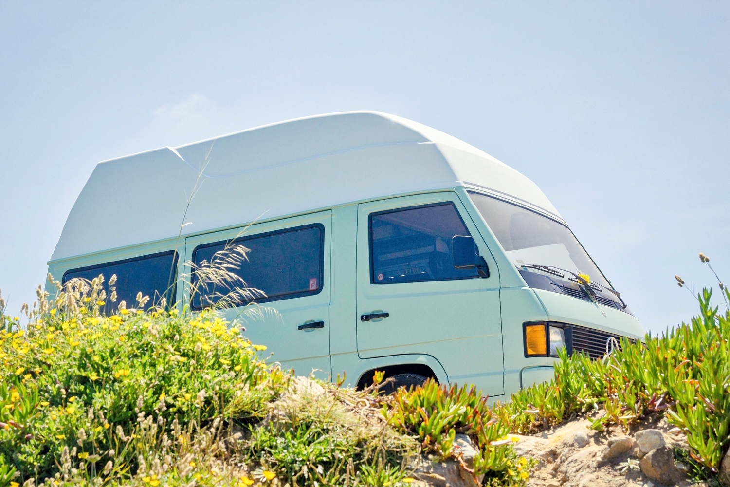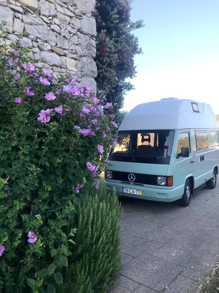 She is a beautiful Mercedes camper van born in 1991 ready to immerse you in nature. She likes to show herself and travel slow around all of Portugal, so you can enjoy the breathtaking views.
